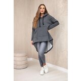 We present you a warm sweatshirt. The sweatshirt has a hood, longer back and a pocket on the front. There is a print on the back of the hoodie. The sweatshirt is made of insulated material. The size is universal and will be suitable for ladies in sizes S, M or L.TURKISH PRODUCTIONMaterial composition:90% cotton,10% elastaneDimensions:Width under the armpit: 56 cmSleeve length from armpit: 41 cmTotal length front: 66 cm / rear: 98 cmThe width of the hips is 64 cm