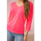 Kesi Pink neon blouse with V-neck Slike