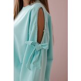 Kesi Set of sweatshirts with a bow on the sleeves and mint leggings cene