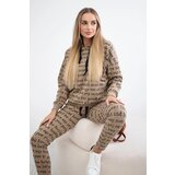 We present you a set of blouses and trousers. Fulllength sweatshirt and trousers with print. Trousers with pockets and waist tie. The set is made of highquality material. The size is universal and will be suitable for ladies size S, M or L.TURKISH PRODUCTIONMaterial composition:90% cotton,10% elastaneSweatshirt dimensions:Width under the armpit: 56 cmTotal length: 61 cmSleeve length: 42 cmPants dimensions:Waist width: 32 cm / stretched: 45 cmLeg length from crotch: 68 cmTotal length: 94 cm