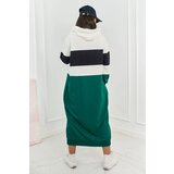 Kesi Three-color hooded dress ecru + black + dark green cene