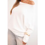 Kesi Włoski Women's asymmetrical batwing viscose sweater ecru Slike