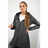 We present to you a comfortable long hoodie. The sweatshirt has a zip fastening and another zip at the back. Side pockets and two decorations on the back. The sweatshirt has sewnon belts with the inscription fashion. The sweatshirt is made of highquality material. The size is universal and will be suitable for ladies in sizes S, M or L.TURKISH PRODUCTIONComposition:90% cotton,10% ElastaneDimensions:Chest width: 47 cmSleeve length from armpit: 48 cmSleeve length from the shoulder: 58 cmTotal length front: 75 cm / back: 100 cmHip width: 55 cm