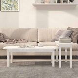 Dodajte svoji dnevni sobi pridih elegance s tem elegantnim kompletom klubskih mizic. Trdna borovina: Trdna borovina je čudovit naravni material. Borovina ima ravne vzorce, grče pa dajejo materialu njegov značilen, rustikalen videz.Prostorsko varčna zasnova: Zaradi premišljene zasnove je mogoče nižjo mizico postaviti pod višjo, kar prihrani prostor in poskrbi za urejenost vašega doma.Močna površina: Močna površina mize je idealna za odlaganje pijače, hrane in drugih okrasnih predmetov.Večnamenska uporaba: Komplet stranskih mizic lahko uporabljate ločeno ali pa jih postavite skupaj in ustvarite drugačno kombinacijo. Komplet stranskih mizic bo idealna rešitev za dekoracijo vsakega bivalnega prostora. Opomba:Vsakemu izdelku je priložen priročnik za enostavno sestavljanje.Barva: BelaMaterial: Trdna borovinaDimenzije (nizka): 110 x 50 x 35 cm (D x Š x V)Dimenzije (visoka): 70 x 30 x 45 cm (D x Š x V)Paket vsebuje:2 x Klubska mizica