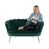 Dajte svojemu domu čarobnost. Z dvosedom NOBLIN je enostavno! Brezčasen dizajn in privlačna kombinacija smaragdne žametne tkanine z zlatimi kromiranimi zlatimi nogami mu dajejo ekstravaganco. Ta dvosed bo navdušil vsakega ljubitelja artdeco sloga. Dvosed je v obliki morske školjke, kar mu daje videz očarljivosti in razkošnosti. Tanke kovinske noge prijetno omilijo celoten masiven videz. Naslon je v notranjosti okrasno všit, dopolnjen z udobnim okroglim sedežem. Z dvosedom NOBLIN bo izstopal vaš prefinjen občutek za oblikovanje. Primeren je za vaš dom v dnevni sobi, spalnici ali luksuzni jedilnici, lahko pa ga uporabite tudi v pisarni, sejni sobi, avli... Dodajte mu dodatke v stilu Artdeco in prepričajte se, da boste navdušili svoje kolege in poslovne partnerje. . Material sedeža: Žametna tkanina . Barva: smaragdna 18 . Material noge: kovina . Barva: zlat krom .Mere (Š x G x V): 135x75x78 cm . Višina sedeža: 43 cm . Globina sedeža: 58 cm . Nosilnost: 180 kg .Dizajnerski .Artdeco slog .Školjka .Moderno oblikovan .Dostavljeno razstavljeno Dizajnerski dvosed NOBLIN vam ponujamo v različnih barvah. Predlagamo, da dvosed kombinirate s foteljem NOBLIN.