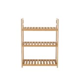 Praktično bambusovo stojalo s 3 policami FIORE TIP 1 ponuja praktičen prostor za shranjevanje in bo krasilo notranjost v kopalnici, hodniku, kuhinji, pa tudi v dnevni sobi. Tri police so nastavljive po višini zahvaljujoč izvrtanimi luknjami. Kakovostni bambusov material, iz katerega je izdelana polica, gre z roko v roki s časom. Tudi naravna barvna zasnova je neuničljiva. Gladka površina preprečuje poškodbe. Okrasite svojo notranjost iz naravnega materiala z modernim stojalom FIORE. Bambusovi izdelki niso le lepi, ampak tudi praktični. . Material: lakiran bambus . Barva: naravni bambus . Mere (Š x G x V): 53 x 26 x 71 cm .3 police .Višinsko nastavljive police .Večnamenski .Sodobno .Praktično .Nosilnost: 30 kg .Dostavljeno razstavljeno Bambus v naših domovih: Čeprav bambus na splošno velja za les, gre za hitro rastočo travo. Nekatere sorte dosežejo višino do 50 m. Bambus se uporablja v različnih panogah, od modne industrije do gradbeništva, vplival pa je tudi na oblikovanje doma. Bambusovo pohištvo je trpežno in močno. Poleg tega se odlikuje po antibakterijskih lastnostih. Idealen način, da v svoj dom vnesete naravni element. Kako skrbim za pohištvo iz bambusa? .Pred prvo uporabo pohištvo očistite z vlažno krpo. . Ne uporabljajte agresivnih čistilnih sredstev. .Pazite, da pohištvo ne pride v stik z vodo. Naj bo suho. . Ne izpostavljajte ga sončni svetlobi, ker lahko material sčasoma postane siv. . Ne izpostavljajte ga dežju, da preprečite rast plesni. .Tudi za redno vzdrževanje bo dovolj le vlažna krpa.