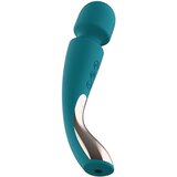 LELO Smart Wand 2 srednja masažni vibrator z možnostjo polnjenja (turkizna) Masažni pripomoček in vibrator v enem razkošna zasnova za različne užitke in masažo telesa, nagrajena zasnova, vgrajena baterija! Zakaj je dober?čudovita zasnovakoži prijazen material idealen za občutljivo kožožameten občutek mehak na otipvsestranska uporaba intimna masaža in masaža telesa, napreden vaginalni vibratorvgrajena baterija do 2 uri čistega užitka10 načinov vibriranja, 10 stopenj intenzivnosti prilagodljivo vibriranjezaklepanje na ključ brez presenečenj v torbici100odstotno vodoodporen lahko uživate pod tušem ali v kopeliizjemno močna stimulacija klitorisa Bodite pozorni na:ni primeren za analno uporabopred prvo uporabo in po vsaki uporabi vibrator temeljito očistiteza lubrikacijo uporabljajte samo lubrikant na vodni osnovipri shranjevanju poskrbite, da ne pride v stik z drugimi izdelki Kako uporabljati? Upravljanje:Za sprostitev otroške ključavnice pritisnite in držite gumba plus in minus skupaj, LED dioda za gumboma se bo prižgala.S ponovnim pritiskom gumba plus se začne vibriranje in poveča intenzivnost načina vibriranja.Če pritisnete gumb () na sredini, lahko preklapljate med 10 načini vibriranja.Z gumbom minus zmanjšate intenzivnost vibriranja.Gumb minus lahko pritisnete in držite pritisnjen, da se naprava popolnoma izklopi.S pritiskom in držanjem sredinskega gumba enoto ponovno nastavite na prvi program, privzeto nastavitev, in jo nato izklopite.Polnjenje: Baterijo lahko napolnite s polnilnikom, ki je priložen v paketu, tako da kabel preprosto priključite v vtičnico na dnu stebla igrače. Nove funkcije v primerjavi s predhodnikom:večja moč.lažja zasnovastabilnejši ročajodlično ravnotežje pri prijemanjuveč baterije dvakrat več, tj. 2 uri uporabeprilagodljivo vibriranje100odstotno vodoodporna zasnova še varnejši mokri užitkiotroška ključavnica bolj diskretno delovanje (ne začne vibrirati v vaši torbi) Uporaba TIP!Masaža telesa: za sprostitev mišic telesa. Za lajšanje stresa.Za predigro: za mravljinčenje intimnih delov, klitorisa, bradavičk, vratu, notranje strani stegen, želodcev, semenčic itd.Za napreden vaginalni vibrator: Za masažo nožnice: Za masažo nožnice, ki jo je treba izvesti z vibratorjem. Vsebina paketa:1 masažni vibrator1 kos kabla USB za polnjenje1 kos satenaste vrečke za shranjevanje Tehnične specifikacije, funkcije:trdna osnova koži prijazen materialžameten dotikoblika, podobna mikrofonupoudarjena, prilagodljiva glavatrpežen ročajzmogljiv motorizjemno močne vibracije10 načinov vibriranja z 10 stopnjami intenzivnostienostavno upravljanje100odstotno vodoodporna zasnovaBaterija za polnjenje (LiIon 520 mA 3,7 V)do 2 uri uporabeCelotna dolžina: 22 cmŠirina stebla: 23,8 cmVišina glave: 4 cmPremer glave: 4 cmTeža: 155 gEmisija hrupa manj kot 50 dBbarva: turkiznafunkcija samodejnega izklopamaterial: ABS, koži prijazen silikon (v skladu z uredbo EU, brez ftalatov). Predlog za čiščenje: Pooblaščeno čiščenje: temeljito operite z blago milo mlačno vodo, sperite in pustite, da se posuši. Priporočamo: uporabite posebno čistilno sredstvo (06302500000) na voljo ločeno. Lelo izdelek. Za ta izdelek LELO velja enoletna garancija za zamenjavo! 10 LET GARANCIJE PROIZVAJALCA!POZOR: garancijo za izdelek je mogoče potrditi le z garancijskim listom, ki je priložen v škatli z izdelkom! Prenesite navodila za uporabo (PDF)
