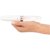 Liaison polnilni LED vibrator za palice iz silikonskega stekla (prosojnobel) Vrhunski vibracijski vibrator s palico z izjemno močnimi vibracijami, ki bodo premaknile vse živčne končiče! Lep in eleganten vibrator Liaison Straight LED združuje vse prednosti silikonskega in steklenega vibratorja. Vibrator je raven in enostaven za držanje, zato ga lahko uporabljate na obeh koncih. En konec je izdelan iz žametnega silikona s teksturo Soft Touch, drugi konec pa iz trdnega, visokokakovostnega borosilikatnega stekla s čutno lučko LED na konici. Zakaj je dober? Trden material z odličnim prevodnikom vibracij močna, intenzivna stimulacijaUporabljata se lahko oba konca dva vibratorja v enem10 načinov vibriranja raznolik užitek, vibracije se čutijo na obeh koncihTrdno telo močan upor pod vsemi koti, lahko se uporablja kot zunanji vibrator z razkošnim videzomOdlična izbira za zunanjo in notranjo stimulacijo Vgrajena baterija za polnjenje ni vam treba skrbeti za zamenjavo baterijEnostavno upravljanje z enim gumbom enostaven za uporabo Priskrbite si to: Pred vsako uporabo in po njej temeljito očistiteNi primerno za analno uporaboZa lubrikacijo uporabljajte samo lubrikante na vodni osnovi.Ni vodoodporen pri čiščenju poskrbite, da električni deli niso izpostavljeni vodi Upravljanje: Na sredini izdelka je en sam gumb, ki ga lahko pritisnete in držite za vklop in izklop vibriranja. Z enim samim kratkim pritiskom lahko preklapljate med ritmi vibriranja. Za popoln izklop je treba gumb na vibratorju držati pritisnjen dlje časa. Priključek polnilnika: Priključek polnilnika se nahaja na nasprotni strani od gumba za upravljanje, v majhnem perforiranem krogu nad oznako DC, ki ga je treba previdno prebosti s koncem polnilnika s prvo obliko. Značilnosti: Vgrajen je polnilec, ki ga je mogoče priključiti na polnilnik: Trden, odličen prevodnik vibracijzaobljena, podolgovata oblikauporabljata se lahko oba konca en konec je iz žametnega silikona, drugi pa iz trdnega, visokokakovostnega borosilikatnega steklaLED luč na konicienostavno upravljanje z enim samim gumbom10 načinov vibriranjavgrajena baterijačas polnjenja: 6070 minutčas pripravljenosti: 6065 urskupna dolžina: 17,7 cmdolžina silikonskega dela: 8,5 cmdolžina steklenega dela: 8 cmnajvečji premer: 2,5 cmteža: 112 gbarva: beloprozornaMaterial: ABS, silikon, prevleka iz PU in borosilikatno steklo (brez ftalatov v skladu z uredbo EU)Kabel USB za polnjenje je vključen v paketuPredlog za čiščenje: Čiščenje z blagim milom in mlačno vodo, nato sperite. Za največjo higieno je priporočljivo, da ga obdelate s posebnim razkužilom, ki ga prav tako izperete. Na voljo ločeno: čistilo za ljubezenske igrače št. izdelka 06302500000).