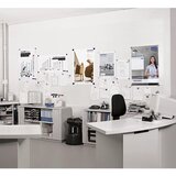 Komplet magnetne stene z dodatno opremo, kovinske table na tapeti, 4 plošče 1 m. Dobava sestavljeno. Tip izdelka magnetne stene. Površina kovinska. Lastnost magnetna. Število plošč 4 k. Dobava z montažnim materialom. Širina 500 mm. Višina 500 mm. Globina 0.5 mm. Teža 5.3 kg. Barva table bela. S ploščami magnetowand ustvarite ogromno prostora za predstavitve. Nalepite jih na tapeto in tako dobite velike, magnetne površine za praktično in zanesljivo pritrjevanje skic, načrtov, fotografij ali plakatov z magneti. Pri tem materiala ne boste poškodovali s pripomočki za pritrjevanje, kot so bucike, risalni žebljički ali lepilni trak. Plošče magnetowand nalepite na tapeto in tako oblikujete manjše magnetne površine ali pa jih uporabite pri oblikovanju prostora. Komplet vsebuje bele kovinske plošče, ki se ne zvijajo in so odporne proti koroziji, z merami 500 x 500 mm, debeline pribl. 0,5 mm. Priloženi so še lepilo, 1 zobata lopatica in izravnalna masa. S pomočjo magnetov lahko potem brez težav pritrjujete obvestila, načrte, osnutke, karton ipd. na stene, ki jih sicer ne uporabljate.