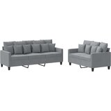 Ta sedežna garnitura je odlična za klepet, branje, gledanje televizije ali samo sprostitev. Namenjena je kot osrednja točka vašega doma. Trpežno blago: Tkanina je preprostega in čistega videza, hkrati pa diha in ima dolgo življenjsko dobo.Trden in stabilen okvir: Vezan les in kovinski okvir oblazinjenega sedišča zagotavljata trdnost in stabilnost. Udobno sedenje: Kavč je zelo udoben z debelo oblazinjenim sedežem, nasloni za roke in hrbtno blazino. Barva: Svetlo siva Material: Blago (100 % poliester), kovina, textillene, vezan les Material polnila: PenaKavč dvosed: Celotne dimenzije: 138 x 77 x 80 cm (Š x G x V) Širina sedeža: 120 cm Globina sedeža: 50 cm Kavč trosed: Celotne dimenzije: 198 x 77 x 80 cm (Š x G x V) Širina sedeža: 180 cm Globina sedeža: 50 cm Višina sedeža od tal: 41 cm Višina naslonjala za roke od tal: 56,5 cm Potrebno sestavljanje: Da Paket vsebuje:1 x Kavč dvosed 1 x Kavč trosed 8 x Velika blazina10 x Majhna blazina Maksimalna teža na sedež: 110 kg. Bodite pozorni na tveganje odprtega ognja in druge vire močne toplote v bližini izdelka.