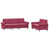 Ta sedežna garnitura je odlična za klepet, branje, gledanje televizije ali samo sprostitev. Postala bo osrednja točka vašega doma. Mehak žamet: Žamet je mehka in udobna tkanina, ki je prijetna do kože.Trden in stabilen okvir: Vezan les in kovinski okvir oblazinjenega sedišča zagotavljata trdnost in stabilnost.Udobno sedenje: Kavč je zelo udoben z debelo oblazinjenim sedežem, nasloni za roke in hrbtno blazino.Barva: Vinsko rdečaMaterial: Žamet (100 % poliester), kovina, textilene, vezan lesMaterial polnila: PenaKavč dvosed:Celotne dimenzije: 152 x 77 x 80 cm (Š x G x V)Velikost sedeža: 120 x 50 cm (Š x G)Kavč trosed:Celotne dimenzije: 212 x 77 x 80 cm (Š x G x V)Velikost sedeža: 180 x 50 cm (Š x G)Višina sedeža od tal: 41 cmVišina naslonjala za roke, merjena od tal: 59,5 cmPotrebno sestavljanje: DaPaket vsebuje:1 x Kavč dvosed1 x Kavč trosed5 x Blazina Maksimalna teža na sedež: 110 kg. Bodite pozorni na tveganje odprtega ognja in druge vire močne toplote v bližini izdelka.