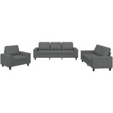 Ta sedežna garnitura je odlična za klepet, branje, gledanje televizije ali samo sprostitev. Postala bo osrednja točka vašega doma. Trpežno blago: Tkanina je preprostega in čistega videza, hkrati pa diha in ima dolgo življenjsko dobo.Trden in stabilen okvir: Vezan les in kovinski okvir oblazinjenega sedišča zagotavljata trdnost in stabilnost.Udobno sedenje: Kavč je zelo udoben z debelo oblazinjenim sedežem, nasloni za roke in hrbtno blazino.Barva: Temno sivaMaterial: Blago (100 % poliester), kovina, textillene, vezan lesMaterial polnila: PenaFotelj:Celotne dimenzije: 94 x 77 x 80 cm (Š x G x V)Velikost sedeža: 60 x 50 cm (Š x G)Kavč dvosed:Celotne dimenzije: 154 x 77 x 80 cm (Š x G x V)Velikost sedeža: 120 x 50 cm (Š x G)Kavč trosed:Celotne dimenzije: 214 x 77 x 80 cm (Š x G x V)Velikost sedeža: 180 x 50 cm (Š x G)Višina sedeža od tal: 41 cmVišina naslonjala za roke, od tal: 57 cmPotrebno sestavljanje: DaPaket vsebuje:1 x Fotelj1 x Kavč dvosed1 x Kavč trosed6 x Blazina Maksimalna teža na sedež: 110 kg. Bodite pozorni na tveganje odprtega ognja in druge vire močne toplote v bližini izdelka.