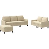 Ta sedežna garnitura je odlična za klepet, branje, gledanje televizije ali samo sprostitev. Postala bo osrednja točka vašega doma. Trpežno blago: Tkanina je preprostega in čistega videza, hkrati pa diha in ima dolgo življenjsko dobo.Trden in stabilen okvir: Vezan les in kovinski okvir oblazinjenega sedišča zagotavljata trdnost in stabilnost.Udobno sedenje: Kavč je zelo udoben z debelo oblazinjenim sedežem in nasloni za roke.Vsestranski stolček za noge: Stolček za noge lahko uporabljate za počitek vaših nog, medtem ko ležite na kavču ali naslanjaču, ali pa kot dodaten sedež v sobi. Poleg tega je zaradi preproste zasnove in kompaktne velikosti idealen za skoraj vsak bivalni prostor.Barva: KremMaterial: Blago (100 % poliester), kovina, textillene, vezan lesMaterial polnila: PenaKavč dvosed:Celotne dimenzije: 138 x 77 x 80 cm (Š x G x V)Širina sedeža: 120 cmGlobina sedeža: 50 cmVišina sedeža od tal: 41 cmVišina naslonjala za roke od tal: 56,5 cmKavč trosed:Celotne dimenzije: 198 x 77 x 80 cm (Š x G x V)Širina sedeža: 180 cmStolček za noge:Celotne dimenzije: 60 x 50 x 41 cm (Š x G x V)Potrebno sestavljanje: DaPaket vsebuje:1 x Kavč dvosed1 x Kavč trosed1 x Stolček za noge5 x Blazina Maksimalna teža na sedež: 110 kg. Bodite pozorni na tveganje odprtega ognja in druge vire močne toplote v bližini izdelka.