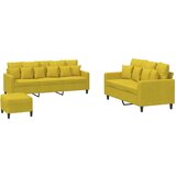 Ta sedežna garnitura je odlična za klepet, branje, gledanje televizije ali samo sprostitev. Namenjena je kot osrednja točka vašega doma. Mehak žamet: Žamet je mehka in udobna tkanina, ki je prijetna do kože.Trden in stabilen okvir: Vezan les in kovinski okvir oblazinjenega sedišča zagotavljata trdnost in stabilnost. Udobno sedenje: Kavč je zelo udoben z debelo oblazinjenim sedežem, nasloni za roke in hrbtno blazino.Vsestranski stolček za noge: Stolček za noge lahko uporabljate za počitek vaših nog, medtem ko ležite na kavču ali naslanjaču, ali pa kot dodaten sedež v sobi. Poleg tega je zaradi preproste zasnove in kompaktne velikosti idealen za skoraj vsak bivalni prostor.Barva: Rumena Material: Žamet (100 % poliester), kovina, textilene, vezan les Material polnila: PenaKavč dvosed: Celotne dimenzije: 138 x 77 x 80 cm (Š x G x V) Širina sedeža: 120 cm Globina sedeža: 50 cm Kavč trosed: Celotne dimenzije: 198 x 77 x 80 cm (Š x G x V) Širina sedeža: 180 cm Globina sedeža: 50 cm Višina sedeža od tal: 41 cm Višina naslonjala za roke od tal: 56,5 cm Dimenzije stolčka za noge: 60 x 50 x 41 cm (Š x G x V)Potrebno sestavljanje: Da Paket vsebuje:1 x Kavč dvosed 1 x Kavč trosed 1 x Stolček za noge8 x Velika blazina10 x Majhna blazina Maksimalna teža na sedež: 110 kg. Bodite pozorni na tveganje odprtega ognja in druge vire močne toplote v bližini izdelka.