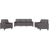 Ta sedežna garnitura je odlična za klepet, branje, gledanje televizije ali samo sprostitev. Postala bo osrednja točka vašega doma. Trpežno umetno usnje: Vrhunsko umetno usnje je zelo vzdržljiv material. Je odporno na madeže, zato ga lahko preprosto čistite z vlažno krpo. Gladka površina mu prav tako daje razkošen videz in lepoto pravega usnja.Trden in stabilen okvir: Vezan les in kovinski okvir oblazinjenega sedišča zagotavljata trdnost in stabilnost.Udobno sedenje: Kavč je zelo udoben z debelo oblazinjenim sedežem, nasloni za roke in hrbtno blazino.Privlačen dizajn: To sedišče za dnevno sobo s preprostim, a modernim dizajnom bo privlačen dodatek za vaš prostor.Barva: SivaMaterial: Umetno usnje (75 % polivinilklorid, 20 % poliester, 5 % bombaž), kovina, textilene, vezan lesMaterial polnila: PenaFotelj:Celotne dimenzije: 78 x 77 x 80 cm (Š x G x V)Širina sedeža: 60 cmGlobina sedeža: 50 cmVišina sedeža od tal: 41 cmVišina naslonjala za roke od tal: 56,5 cmKavč dvosed:Celotne dimenzije: 138 x 77 x 80 cm (Š x G x V)Širina sedeža: 120 cmKavč trosed:Celotne dimenzije: 198 x 77 x 80 cm (Š x G x V)Širina sedeža: 180 cmPotrebno sestavljanje: DaPaket vsebuje:1 x Fotelj1 x Kavč dvosed1 x Kavč trosed6 x Blazina Maksimalna teža na sedež: 110 kg. Bodite pozorni na tveganje odprtega ognja in druge vire močne toplote v bližini izdelka.