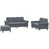Ta sedežna garnitura je odlična za klepet, branje, gledanje televizije ali samo sprostitev. Postala bo osrednja točka vašega doma. Mehak žamet: Žamet je mehka in udobna tkanina, ki je prijetna do kože.Trden in stabilen okvir: Vezan les in kovinski okvir oblazinjenega sedišča zagotavljata trdnost in stabilnost.Udobno sedenje: Kavč je zelo udoben z debelo oblazinjenim sedežem, nasloni za roke in hrbtno blazino.Vsestranski stolček za noge: Stolček za noge lahko uporabljate za počitek vaših nog, medtem ko ležite na kavču ali naslanjaču, ali pa kot dodaten sedež v sobi. Poleg tega je zaradi preproste zasnove in kompaktne velikosti idealen za skoraj vsak bivalni prostor.Barva: Temno sivaMaterial: Žamet (100 % poliester), kovina, textilene, vezan lesMaterial polnila: PenaStolček za noge:Celotne dimenzije: 70 x 55 x 41 cm (Š x G x V)Dvosed (120 cm):Celotne dimenzije: 152 x 77 x 80 cm (Š x G x V)Velikost sedeža: 120 x 50 cm (Š x G)Dvosed (140 cm):Celotne dimenzije: 172 x 77 x 80 cm (Š x G x V)Velikost sedeža: 140 x 50 cm (Š x G)Višina sedeža od tal: 41 cmVišina naslonjala za roke, merjena od tal: 59,5 cmPotrebno sestavljanje: DaPaket vsebuje:2 x Kavč dvosed1 x Stolček za noge4 x Blazina Maksimalna teža na sedež: 110 kg. Bodite pozorni na tveganje odprtega ognja in druge vire močne toplote v bližini izdelka.