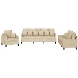 Ta sedežna garnitura je odlična za klepet, branje, gledanje televizije ali samo sprostitev. Postala bo osrednja točka vašega doma. Trpežno blago: Tkanina je preprostega in čistega videza, hkrati pa diha in ima dolgo življenjsko dobo.Trden in stabilen okvir: Vezan les in kovinski okvir oblazinjenega sedišča zagotavljata trdnost in stabilnost.Udobno sedenje: Kavč je zelo udoben z debelo oblazinjenimi sedeži, nasloni za roke in hrbtnimi blazinami.Praktične blazine za kavč: Te kvadratne okrasne blazine popestrijo vaš dekor in lahko povečajo udobje, ko sedite ali ležite.Barva: KremMaterial: Blago (100 % poliester), kovina, textilene, vezan lesMaterial polnila: PenaFotelj:Celotne dimenzije: 78 x 77 x 80 cm (Š x G x V)Širina sedeža: 60 cmGlobina sedeža: 50 cmVišina sedeža od tal: 41 cmVišina naslonjala za roke od tal: 56,5 cmKavč dvosed:Celotne dimenzije: 138 x 77 x 80 cm (Š x G x V)Širina sedeža: 120 cmKavč trosed:Celotne dimenzije: 198 x 77 x 80 cm (Š x G x V)Širina sedeža: 180 cmPotrebno sestavljanje: DaPaket vsebuje:1 x Fotelj1 x Kavč dvosed1 x Kavč trosed9 x blazina12 x Blazina Maksimalna teža na sedež: 110 kg. Bodite pozorni na tveganje odprtega ognja in druge vire močne toplote v bližini izdelka.