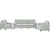 Ta sedežna garnitura je odlična za klepet, branje, gledanje televizije ali samo sprostitev. Postala bo osrednja točka vašega doma. Mehak žamet: Žamet je mehka in udobna tkanina, ki je prijetna do kože.Trden in stabilen okvir: Vezan les in kovinski okvir oblazinjenega sedišča zagotavljata trdnost in stabilnost.Udobno sedenje: Kavč je zelo udoben z debelo oblazinjenim sedežem, nasloni za roke in hrbtno blazino.Praktične valjaste blazine: Te valjaste blazine popestrijo vaš dekor in lahko povečajo udobje, ko sedite ali ležite.Barva: Svetlo sivaMaterial: Žamet (100 % poliester), kovina, textilene, vezan lesMaterial polnila: PenaFotelj:Celotne dimenzije: 78 x 77 x 80 cm (Š x G x V)Velikost sedeža: 60 x 50 cm (Š x G)Kavč dvosed:Celotne dimenzije: 138 x 77 x 80 cm (Š x G x V)Velikost sedeža: 120 x 50 cm (Š x G)Kavč trosed:Celotne dimenzije: 198 x 77 x 80 cm (Š x G x V)Velikost sedeža: 180 x 50 cm (Š x G)Višina sedeža od tal: 41 cmVišina naslonjal za roke, merjena od tal: 60 cmDimenzije vzglavnika (posamezno): 15 x 50 cm (Premer x V)Potrebno sestavljanje: DaPaket vsebuje:1 x Fotelj1 x Kavč dvosed1 x Kavč trosed4 x Blazina6 x Blazina Maksimalna teža na sedež: 110 kg. Bodite pozorni na tveganje odprtega ognja in druge vire močne toplote v bližini izdelka.