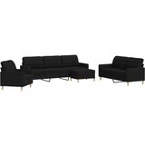 Ta sedežna garnitura je odlična za klepet, branje, gledanje televizije ali samo sprostitev. Postala bo osrednja točka vašega doma. Mehak in trpežen material: Tkanina iz poliestra ponuja kombinacijo mehkobe, zračnosti in trpežnosti ter vam zagotavlja popolno udobje in prijetnost. Trden in stabilen okvir: Kovinski okvir sedežne garniture iz blaga zagotavljata trdnost in stabilnost. Udobno sedenje: Kavč je zelo udoben z debelo oblazinjenimi sedeži, nasloni za roke in hrbtnimi blazinami. Vsestranski stolček za noge: Stolček za noge lahko uporabljate za počitek vaših nog, medtem ko ležite na kavču ali naslanjaču, ali pa kot dodaten sedež v sobi. Poleg tega je zaradi preproste zasnove in kompaktne velikosti idealen za skoraj vsak bivalni prostor.Barva: ČrnaMaterial: Blago (100 % poliester), kovinaMaterial polnila: PenaVišina sedeža od tal: 41 cmVišina naslonjala za roke od tal: 56,5 cmFotelj:Celotne dimenzije: 77 x 77 x 80 cm (Š x G x V)Velikost sedeža: 60 x 50 cm (Š x G)Kavč dvosed:Celotne dimenzije: 157 x 77 x 80 cm (Š x G x V)Velikost sedeža: 140 x 50 cm (Š x G)Kavč trosed:Celotne dimenzije: 226 x 77 x 80 cm (Š x G x V)Velikost sedeža: 210 x 50 cm (Š x G)Dimenzije stolčka za noge: 70 x 55 x 41 cm (Š x G x V)Paket vsebuje:1 x Fotelj1 x Kavč dvosed1 x Kavč trosed1 x Stolček za noge Maksimalna teža na sedež: 110 kg. Bodite pozorni na tveganje odprtega ognja in druge vire močne toplote v bližini izdelka.