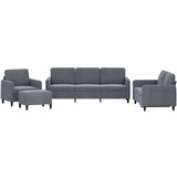 Ta sedežna garnitura je odlična za klepet, branje, gledanje televizije ali samo sprostitev. Postala bo osrednja točka vašega doma. Mehak žamet: Žamet je mehka in udobna tkanina, ki je prijetna do kože.Trden in stabilen okvir: Vezan les in kovinski okvir oblazinjenega sedišča zagotavljata trdnost in stabilnost.Udobno sedenje: Kavč je zelo udoben z debelo oblazinjenim sedežem, nasloni za roke in hrbtno blazino.Vsestranski stolček za noge: Stolček za noge lahko uporabljate za počitek vaših nog, medtem ko ležite na kavču ali naslanjaču, ali pa kot dodaten sedež v sobi. Poleg tega je zaradi preproste zasnove in kompaktne velikosti idealen za skoraj vsak bivalni prostor.Barva: Temno sivaMaterial: Žamet (100 % poliester), kovina, textilene, vezan lesMaterial polnila: PenaFotelj:Celotne dimenzije: 78 x 77 x 80 cm (Š x G x V)Velikost sedeža: 60 x 50 cm (Š x G)Kavč dvosed:Celotne dimenzije: 138 x 77 x 80 cm (Š x G x V)Velikost sedeža: 120 x 50 cm (Š x G)Kavč trosed:Celotne dimenzije: 198 x 77 x 80 cm (Š x G x V)Velikost sedeža: 180 x 50 cm (Š x G)Višina sedeža od tal: 41 cmVišina naslonjal za roke, merjena od tal: 60 cmDimenzije stolčka za noge: 60 x 50 x 41 cm (Š x G x V)Potrebno sestavljanje: DaPaket vsebuje:1 x Fotelj1 x Kavč dvosed1 x Kavč trosed1 x Stolček za noge6 x Blazina Maksimalna teža na sedež: 110 kg. Bodite pozorni na tveganje odprtega ognja in druge vire močne toplote v bližini izdelka.