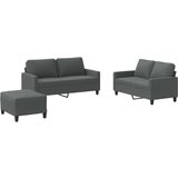 Ta sedežna garnitura je odlična za klepet, branje, gledanje televizije ali samo sprostitev. Postala bo osrednja točka vašega doma. Trpežno blago: Tkanina je preprostega in čistega videza, hkrati pa diha in ima dolgo življenjsko dobo.Trden in stabilen okvir: Vezan les in kovinski okvir oblazinjenega sedišča zagotavljata trdnost in stabilnost.Udobno sedenje: Kavč je zelo udoben z debelo oblazinjenim sedežem in nasloni za roke.Vsestranski stolček za noge: Stolček za noge lahko uporabljate za počitek vaših nog, medtem ko ležite na kavču ali naslanjaču, ali pa kot dodaten sedež v sobi. Poleg tega je zaradi preproste zasnove in kompaktne velikosti idealen za skoraj vsak bivalni prostor.Barva: Temno sivaMaterial: Blago (100 % poliester), kovina, textillene, vezan lesMaterial polnila: PenaDvosed (majhen):Celotne dimenzije: 138 x 77 x 80 cm (Š x G x V)Širina sedeža: 120 cmGlobina sedeža: 50 cmVišina sedeža od tal: 41 cmVišina naslonjala za roke od tal: 56,5 cmDvosed (velik):Celotne dimenzije: 158 x 77 x 80 cm (Š x G x V)Širina sedeža: 140 cmStolček za noge:Celotne dimenzije: 70 x 55 x 41 cm (Š x G x V)Potrebno sestavljanje: DaPaket vsebuje:2 x Kavč dvosed1 x Stolček za noge4 x Blazina Maksimalna teža na sedež: 110 kg. Bodite pozorni na tveganje odprtega ognja in druge vire močne toplote v bližini izdelka.