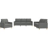Ta sedežna garnitura je odlična za klepet, branje, gledanje televizije ali samo sprostitev. Postala bo osrednja točka vašega doma. Trpežno blago: Tkanina je preprostega in čistega videza, hkrati pa diha in ima dolgo življenjsko dobo.Trden in stabilen okvir: Vezan les in kovinski okvir oblazinjenega sedišča zagotavljata trdnost in stabilnost.Udobno sedenje: Kavč je zelo udoben z debelo oblazinjenim sedežem, nasloni za roke in hrbtno blazino.Privlačen dizajn: Ta sedišče za dnevno sobo s preprostim, a modernim dizajnom bo privlačen dodatek za vaš prostor.Barva: Temno sivaMaterial: Blago (100 % poliester), kovina, textillene, vezan lesMaterial polnila: PenaFotelj:Celotne dimenzije: 78 x 77 x 80 cm (Š x G x V)Širina sedeža: 60 cmGlobina sedeža: 50 cmVišina sedeža od tal: 41 cmVišina naslonjala za roke od tal: 56,5 cmKavč dvosed:Celotne dimenzije: 138 x 77 x 80 cm (Š x G x V)Širina sedeža: 120 cmKavč trosed:Celotne dimenzije: 198 x 77 x 80 cm (Š x G x V)Širina sedeža: 180 cmPotrebno sestavljanje: DaPaket vsebuje:1 x Fotelj1 x Kavč dvosed1 x Kavč trosed6 x Blazina Maksimalna teža na sedež: 110 kg. Bodite pozorni na tveganje odprtega ognja in druge vire močne toplote v bližini izdelka.