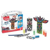 Totemu dodajte barve z obarvanim peskom in doživite Indijansko avanturo v vašem domu.Uporabite lepljiv karton za lažje pritrjevanje peska. S svetlečimi barvami in dekorativnimi deli pa Totemu dodajte piko na i.
