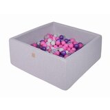 MeowBaby kvadratni bazen z žogicami, 90x90x40 cm s 300 žogicami, bombaž, svetlo siva: temno roza/vijolična/prozorna/siva, (21333792) Slike