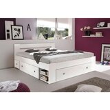 Ta izdelek je na voljo SAMO NA SPLETU! Vsak centimeter popolnoma izkoriščen: trendovski posteljni sistem Stefan poskrbi za majhen bivalni prostor s premišljeno funkcionalnostjo. Tridelni komplet, sestavljen iz postelje in dveh nočnih omaric, je prijeten prostor za spanje in pameten prostor za shranjevanje v enem. Sodoben dizajn, udobje in funkcionalna oprema tvorijo uspešno celoto. Z jasnimi linijami in prefinjeno belo barvo je poskrbljeno tudi za prijazen ambient, v katerem lahko čudovito spiš in sanjaš. Približno 204 x 185 x 86 cm (D x Š x V) velika postelja s prostorom za shranjevanje z ležalno površino približno 180 x 200 cm (Š x D) nudi veliko prostora za do dve osebi z največ po ca. 120 kg. V treh prostornih posteljnih predalih lahko shraniš različne stvari od blazin in odej do posteljnine, oblačil ali torb. Štiri odprte police lahko očarljivo opremiš z lepo razporejenimi knjigami ali izbranimi najljubšimi okraski, s čimer prostoru v trenutku daš osebno noto. Poseben poudarek pa sta dve nočni omarici, vsaka meri približno 40 x 30 x 40 cm (Š x V x G). Opremljeni sta s po štirimi kolesci in ju lahko potisneš pod posteljo na praktičen in prostorsko varčen način. Tako kot posteljni predali imajo tudi stranske omarice okroglo luknjo za oprijem, tako da jih je mogoče zelo enostavno izvleči. Vzmetnica in letveno dno nista vključena v dobavo, lahko pa si ju enostavno izbereš v naši spletni trgovini.