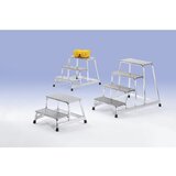 Montažna podnožka, pohodna površina 550 x 300 mm, 1 stopnica, ŠxG 590 x 370 mm. Dobava sestavljeno. Tip izdelka aluminijaste montažne stopnice. Globina stopnic 225 mm. Širina stopnic 550 mm. Vzpenjanje enostransko. Stopnice vključno s ploščadjo 1 k. Višina ploščadi 200 mm. Širina ploščadi 550 mm. Globina ploščadi 300 mm. Material ogrodja aluminij. Material stopnic narebren aluminij. Skupna globina 370 mm. Skupna širina 590 mm. Teža 2.5 kg. Delovna višina 2200 mm. Varjena konstrukcija iz aluminijastih cevi. Nedrseči podnožni čepi iz umetne mase. Zgornja pohodna površina 550 x 300 mm. Stopnice iz nedrseče narebrene pločevine, globina 225 mm. Zelo stabilna in trdna izvedba.