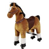 Želite vašemu otroku omogočiti prav posebno izkušnjo in veselje? S tem gugalnim konjičkom, ki je del znamke My Baby Lou, boste to dosegli v enem trenutku! Konjička odlikuje zelo lep, realističen dizajn v rjavi barvi. Stranski ročaji na vratu zagotavljajo ustrezen oprijem. Iz varnostnih razlogov se kolesa vrtijo samo v eno smer, tako da se igrača ne more obračati.Robustna, pocinkana kovinska konstrukcija daje konjičku stabilnost. Mehka plišasta prevleka pa poskrbi za prijetno površino konjiček bo odličen tudi za crkljanje. Primerno za otroke od 36 let starosti. Dimenzije: 76x27x85 cm
