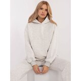 The model is wearing one size. Model's measurements: height 175 cm, bust 90 cm, waist 66 cm, hips 94 cm. Dimensions of the set in one size measured flat: width of the sweatshirt under the armpits 65 cm, length of the sweatshirt 74 cm, sleeve length 64 cm, width of the pants at the waist 34 cm, length of the pants 94 cm.
