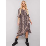 OCH BELLA Black and beige dress with animal prints. Material: 97% Polyester, 3% Elastanewashing method: machine wash at 30CThe model is wearing a size S. Model's measurements: height 175 cm, bust 84 cm, waist 62 cm, hips 93 cm. Dimensions of the dress in size S measured flat: armpit width 45 cm, total length 130 cm, sleeve length 39 cm