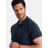 Ombre BASIC men's single color pique knit polo shirt - navy blue Slike