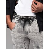 Men's joggers with zippered cargostyle pockets have been a hit in recent years. These pants combine the multifunctionality of cargo pants with the sporty looseness of a jogger cut. Many men have come to love this model for its practicality that works well in urban styling. They have the advantage of a large number of pockets, including two large distinctive side patch pockets fastened with press studs. The drawstring at the waist allows you to comfortably put on the pants and adjust them to your figure properly. Joggers with pockets are often chosen as an element of everyday men's clothing matching classic tshirts and sports sweatshirtsmen's joggerstwo pressfastened cargo pockets on the sidetwo patch pockets on the fronttwo patch pockets on the backdrawstring waistband with drawstring waistbandribbing on the legsdecorative stitching before the kneebranding on back of pantsdecorative aglets at drawstringsMaterial: 98% cotton 2% elastaneColor: graphiteModel's height: 190 cm.The model presents the product in size: L