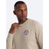 Ombre Men's non-stretch sweatshirt with college style patch - sand Slike