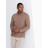 Ombre Men's structured polo longsleeve with patch - brown cene