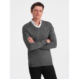 Ombre Men's sweater with a "v-neck" neckline with a shirt collar - graphite cene