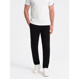 Cotton sweatpants will appeal to men who appreciate practical solutions. Comfort of wearing is provided by soft cotton material with peach effect. The timeless cut perfectly combines comfort with style men's sweatpants fit both casual and sports sets. Sweatpants with a slightly tapered leg and a drawstring waist will perfectly emphasize the male figureombre Basic collection Cotton Lineclassic men's sweatpantspants with a slightly tapered legpleasant to the touch fabric with "peach effect" on the insideadjustable waistband with drawstringdecorative details with branding at the drawstringtwo front pocketsone pocket on the backpatch with brandingMaterial: 100% cottonColor: blackModel height 184 cm.The model presents the product in size: M