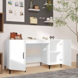 Ta modna pisalna miza je popolna kombinacija funkcionalnosti, trpežnosti in dizajna, zato bo vaši pisarni ali študijski sobi dodala edinstven industrijski pridih. Stabilen material: Inženirski les se ponaša z izjemno kakovostjo, gladko površino ter močjo, stabilnostjo in odpornostjo na vlago.Močan okvir: Konstrukcija računalniške mize zagotavlja njeno trdnost, vzdržljivost in dolgo življenjsko dobo.Veliko prostora za shranjevanje: Velika mizna plošča nudi idealno in prostorno delovno površino. Hkrati pa 2 predelka za vrati zagotavljata prostor za shranjevanje številnih predmetov.Večnamenska pisalna miza: Pisalna miza je primerna za različne namene. Lahko se uporablja kot študijska miza ali pisalna miza v pisarni in celo kot toaletna mizica v spalnici. Opomba:Vsakemu izdelku je priložen priročnik za enostavno sestavljanje.Barva: Bela z visokim sijajemMaterial: Inženirski les, kovinaDimenzije: 140 x 50 x 75 cm (Š x G x V)