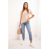 The women's shortsleeve blouse is the perfect choice for women who value comfort and simplicity in a fashionable version. Made from soft, pleasanttotouch cotton with added elastane, it fits the silhouette perfectly, ensuring comfort throughout the day. The minimalist print on the front gives it a modern character, while the classic cut makes it a great match for both jeans and elegant trousers or skirts.This is a versatile blouse that you can wear every day, to work, school, or meetings with friends. Thanks to its timeless design, it will never go out of style, and its simplicity makes it easy to match with various outfits.The size is universal and will be suitable for ladies in size S, M, or L.Product features:classic, simple cutshort sleeveround necklineminimalist print on the frontsoft and stretchy materialeveryday wearing comfortMade in PolandDimensions:The dimensions listed below are measured flat +/ 1 cmTo obtain the circumference measurement, multiply the width by 2Width under the arms: 51 cmTotal length: 66 cmMaterial composition:95% cotton5% elastane