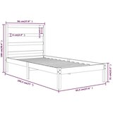 Ustvarite moderno spalnico s tem lesenim posteljnim okvirjem! To je praktičen in dekorativen dodatek za vaše notranje prostore. Vrhunski material: trdna borovina je čudovit naravni material. Borovina ima ravne vzorce, grče pa dajejo materialu njegov značilen, rustikalen videz.Trdne letvice: Letvice iz vezanega lesa omogočajo dobro porazdelitev teže in zagotavljajo, da vzmetnica ostane na mestu ob vsakem zasuku in obračanju med spanjem.Udobno vzglavje: Klasično vzglavje omogoča udoben počitek med branjem ali gledanjem filma. Opomba:Paket vsebuje samo posteljni okvir. Vzmetnica ni priložena. V naši trgovini si lahko ogledate ustrezne vzmetnice.Ta posteljni okvir je primeren za vzmetnico velikosti 90 x 190 cm (3FT Single).Barva: BelaMaterial posteljnega okvirja: Trdna borovinaMaterial letvic: Vezan lesCelotne dimenzije: 195,5 x 96 x 100 cm (D x Š x V)Dimenzije vzglavja: 96 x 4 x 100 cm (Š x G x V)Velikost primerne vzmetnice: 90 x 190 cm (Š x D) (vzmetnica ni priložena)Potrebno sestavljanje: DaPaket vsebuje:1 x Posteljni okvir1 x Vzglavje