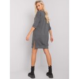 Dark gray cotton dress with a zipper. Material: 90% cotton, 10% elastanewashing method: machine wash at 30CThe model is wearing a size S/M. Model's measurements: height 174 cm, bust 92 cm, waist 62 cm, hips 90 cm. Dimensions of the dress in size S/M measured flat: width at the armpits 50 cm, total length 88 cm, sleeve length 41 cm