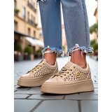 Women's openwork sneakers made of ecoleather and fabric insole on a platform, combining comfort with a fashionable style. Ideal for everyday wear, they provide lightness and comfort, and the subtle design adds elegance to any outfit.