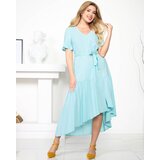 Women's summer maxi dress made of airy material, tied at the waist. Model with short sleeves and a Vneck. Choose a color for yourself! NOTE: Measurement accuracy (+/) 1 cm.