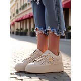 Women's openwork sneakers made of ecoleather and fabric insole on a platform, combining comfort with a fashionable style. Perfect for everyday wear, they provide lightness and comfort, and the subtle design adds elegance to any outfit.