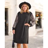A straight kneelength women's dress with long, embellished sleeves with sequins and a round neckline. A musthave this season! NOTE: Measurement accuracy (+/) 1 cm. Dimensions measured flat.