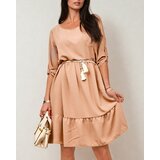Casual women's kneelength dress with long, rollup sleeves and round neckline. Plus a belt included. Must have of this season! NOTE: Measurement accuracy (+/) 1 cm. Dimensions measured flat.
