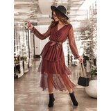 Women's midi dress with long sleeves. Casual model made of meshlike fabric with a wrap neckline. Bottom embellished with ruffles. Must have this season! ATTENTION: Measurement accuracy (+/) 1 cm. Measurements taken flat.