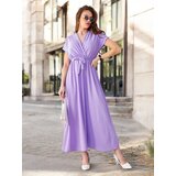 Women's midi dress with an elastic waist. Model with short sleeves, wrap neckline, and a belt. A musthave in your wardrobe!